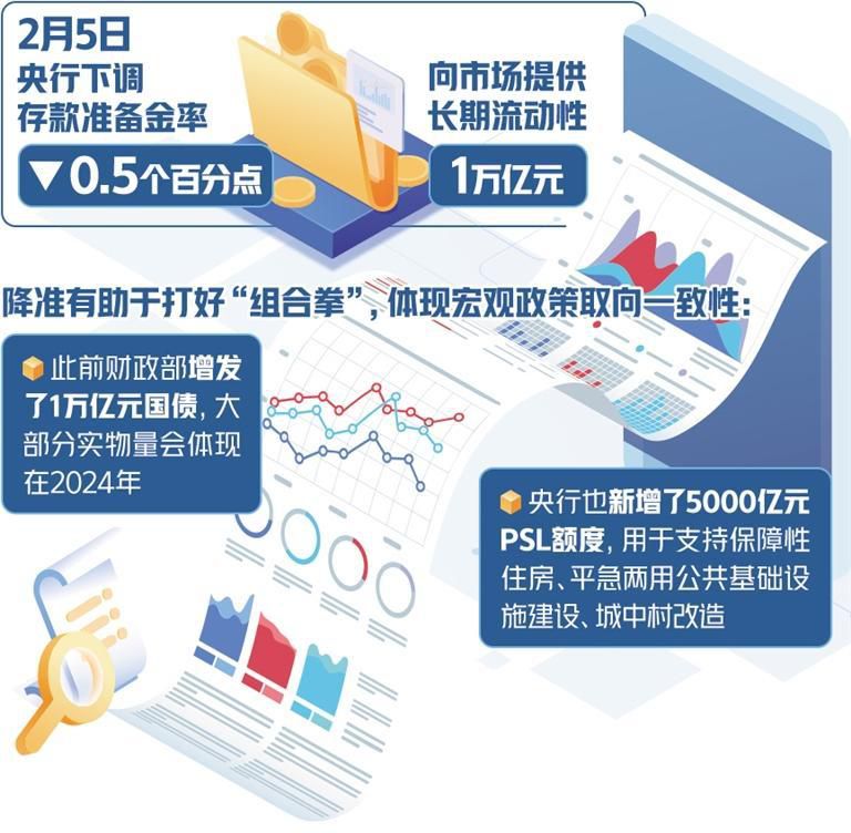 2月5日,今年首次降準(zhǔn)落地。此前,中國人民銀行行長潘功勝在1月24日舉辦的國新辦發(fā)布會(huì)上宣布,2月5日下調(diào)存款準(zhǔn)備金率0.5個(gè)百分點(diǎn),向市場提供長期流動(dòng)性1萬億元。