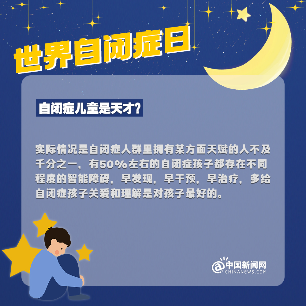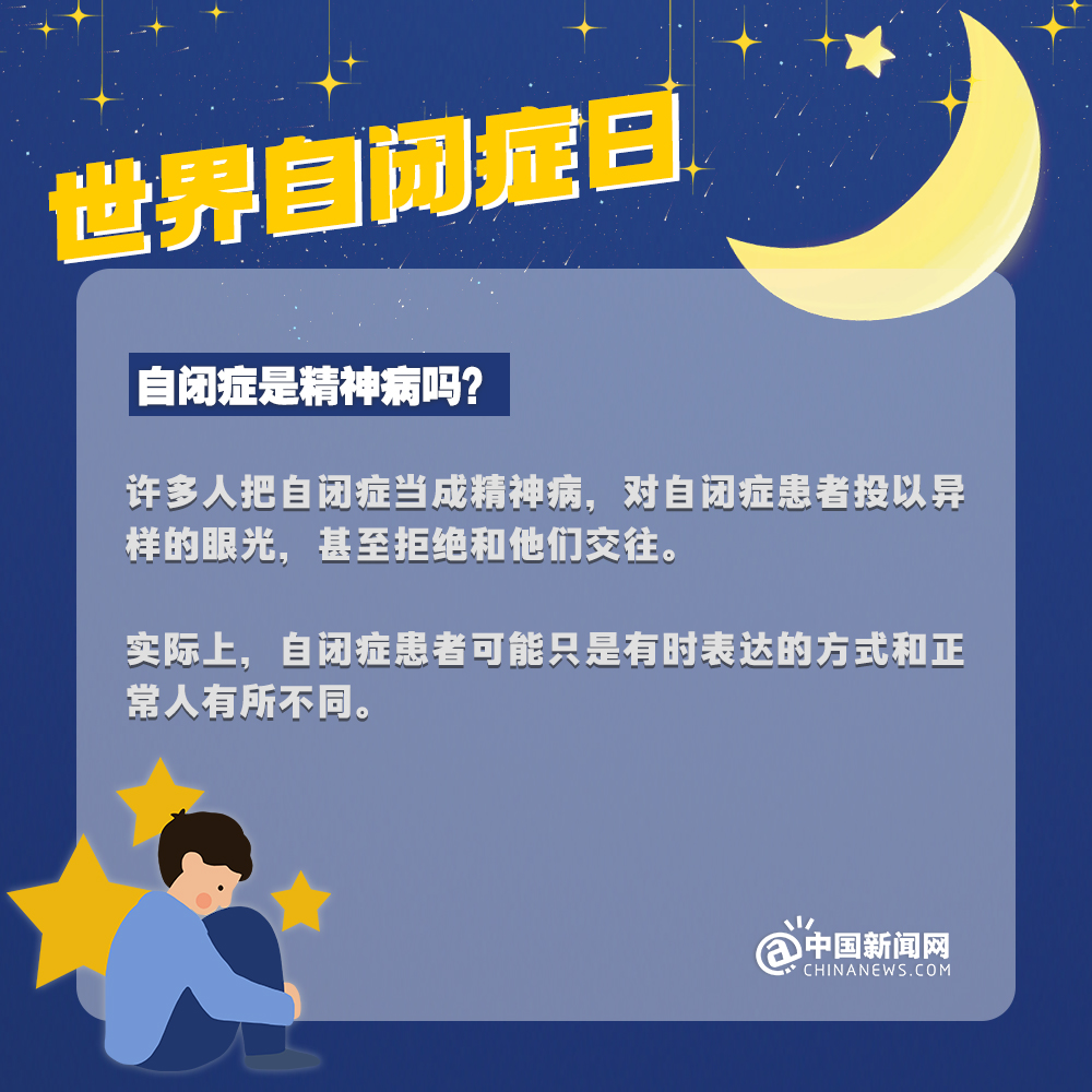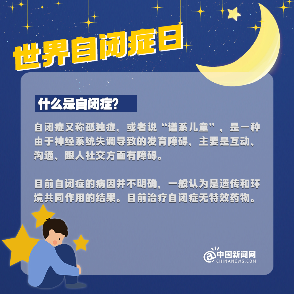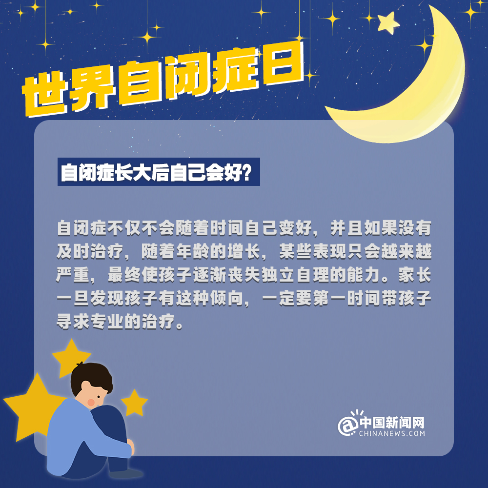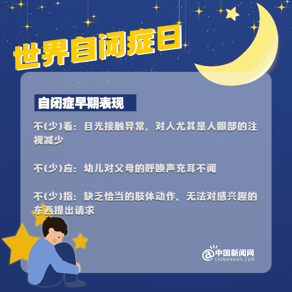 中新網(wǎng)4月2日電 自閉癥兒童,也被稱(chēng)為“來(lái)自星星的孩子”,他們的情緒難以捉摸,他們的思想難以表達(dá),他們像星星一樣孤獨(dú)地游離在宇宙中……有數(shù)據(jù)顯示:目前中國(guó)自閉癥患者已超1300萬(wàn)人。自閉癥有哪些認(rèn)知誤區(qū)?該如何早期識(shí)別自閉癥?詳情↓關(guān)愛(ài)自閉癥患者,讓星星的孩子有愛(ài)不孤單!