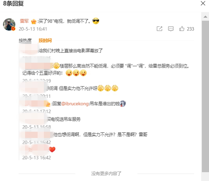 動用吊車安裝電視,雷軍曾點(diǎn)評