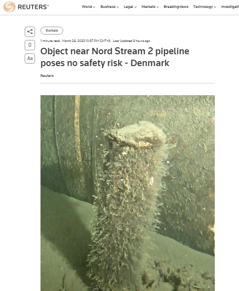 此前俄羅斯方面曾建議丹麥檢查“北溪2”管道附近是否存在其他爆炸物,稱在距離爆炸現(xiàn)場約30公里的地方發(fā)現(xiàn)一不明物體。該物體呈圓柱形,高約40厘米,直徑約10厘米。