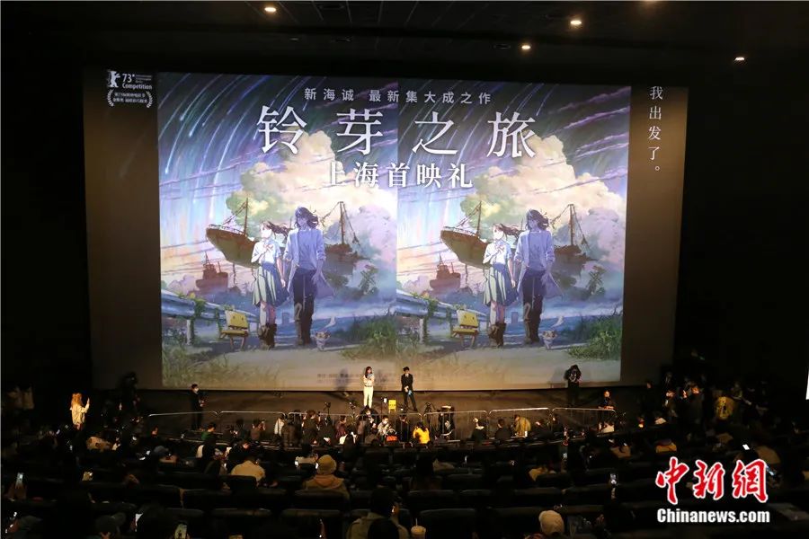導(dǎo)演新海誠(chéng)攜最新電影《鈴芽之旅》在上海萬達(dá)影城舉行首映式。陳玉宇 攝