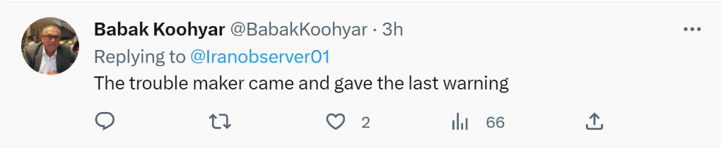 網(wǎng)友巴巴克·庫希亞爾說:“制造麻煩的人來發(fā)最后通牒了。