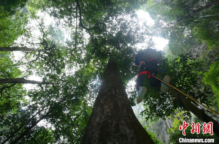 科考人員攀樹測(cè)量。 廣西林業(yè)局供圖