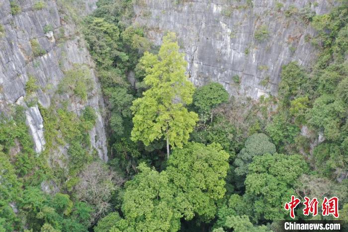 巨樹生長(zhǎng)在峰叢洼地當(dāng)中?!V西林業(yè)局供圖
