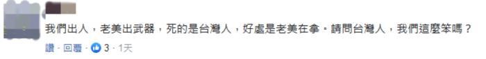 “我們出人,老美出武器,死的是臺灣人,好處是老美在拿。請問臺灣人,我們這么笨嗎?”