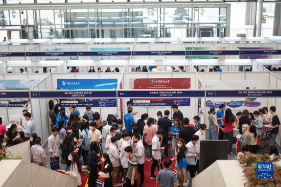 4月22日,在位于越南首都河內(nèi)的國家會議中心,留學咨詢者絡繹不絕。新華社記者 胡佳麗 攝