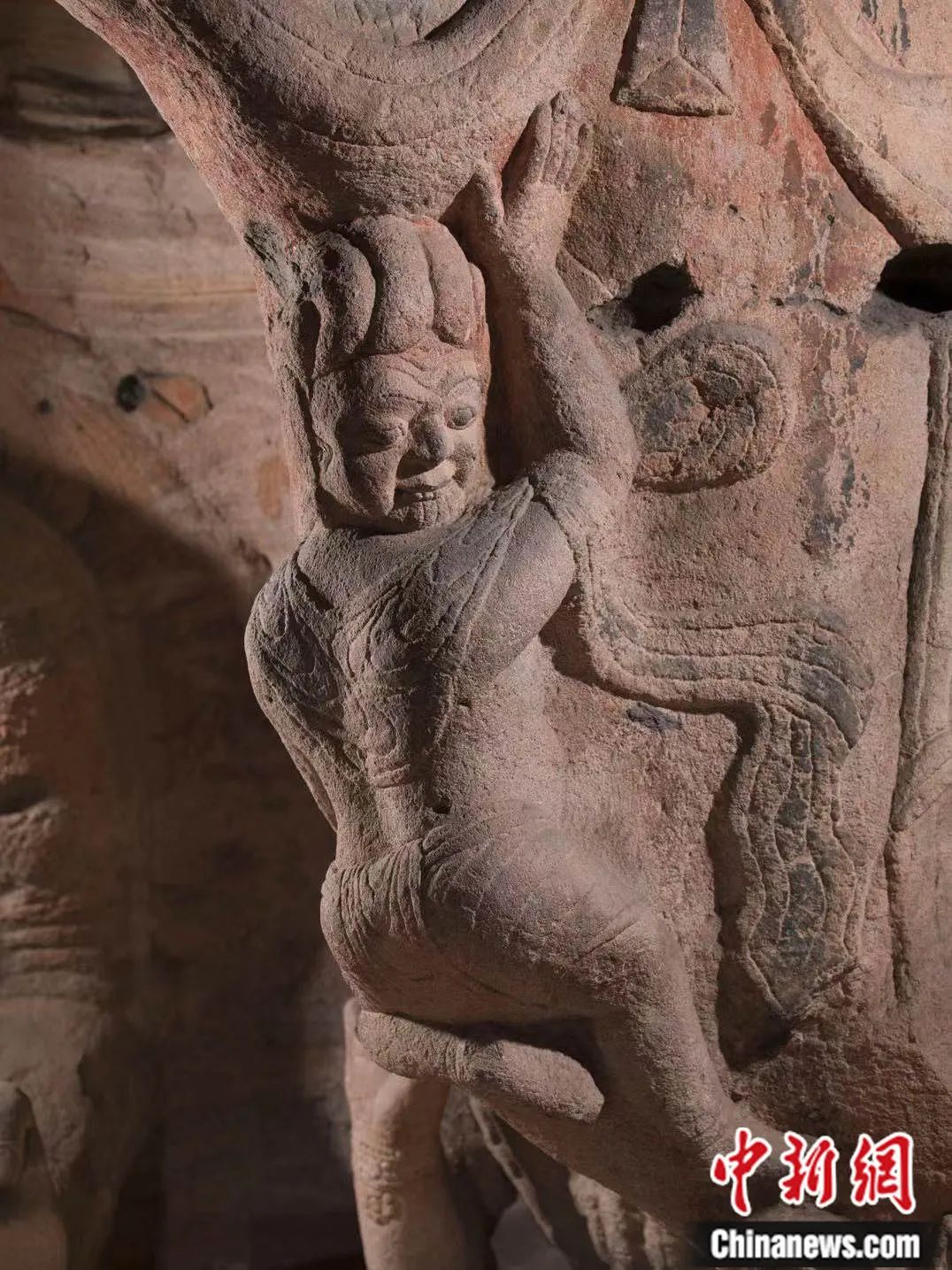 云岡石窟第8窟東側(cè)摩醯首羅天。云岡研究院供圖