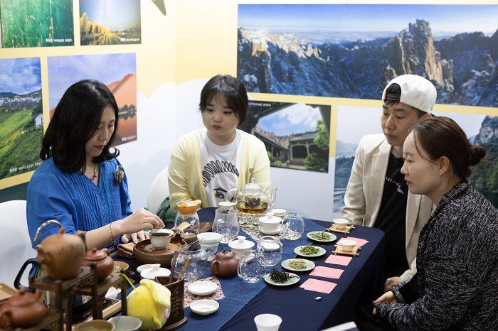 中國展位以“你好中國!”為主題,展出“中國旅游圖片征集展”獲獎作品。中國駐首爾旅游辦事處邀請中國銀行、中國國航、東方航空、南方航空、山東航空和春秋航空等駐韓中資機構(gòu)和吉林省、遼寧省、山東省、安徽省、貴州省、湖南省、四川省以及黃山市、張家界市等省市文化和旅游機構(gòu)共同參展,面向韓國旅游業(yè)界和民眾推出豐富多彩、形式各異的互動體驗項目,并發(fā)放韓文版中國旅游資料和圖冊。辦事處還在展位舉辦茶藝表演活動,請韓國民眾現(xiàn)場體驗中國茶文化的魅力。