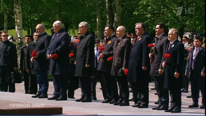 講話期間,普京宣布為紀(jì)念在衛(wèi)國(guó)戰(zhàn)爭(zhēng)中逝去的軍人和親人默哀一分鐘,閱兵現(xiàn)場(chǎng)肅立默哀。