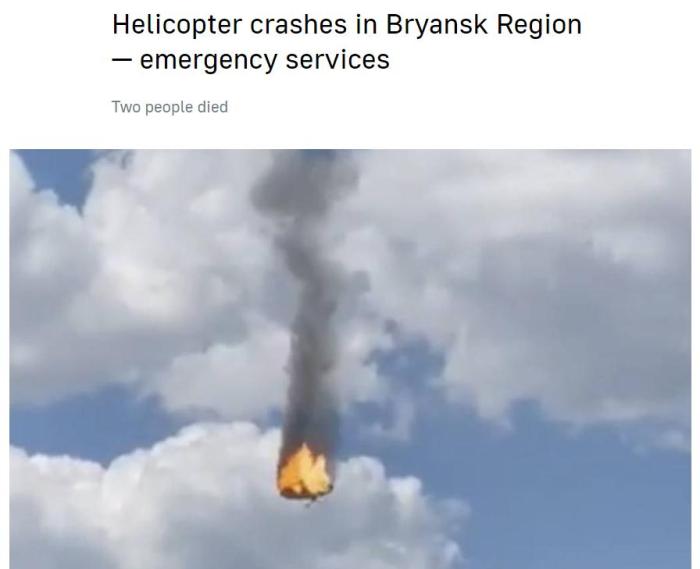 據報道,消息人士稱,“根據初步數據,一架直升機在克林茨市墜毀,原因是發(fā)動機起火。”