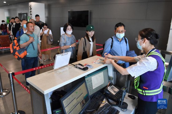 5月13日,乘坐西安-烏魯木齊-阿什哈巴德首趟航班的旅客準(zhǔn)備登機(jī)。