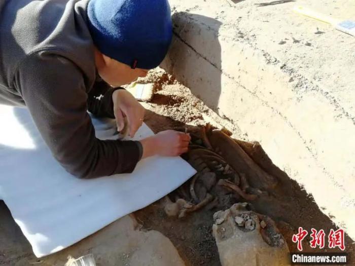 2019年試掘謝爾哈拉卡特墓地M01。王建新 供圖