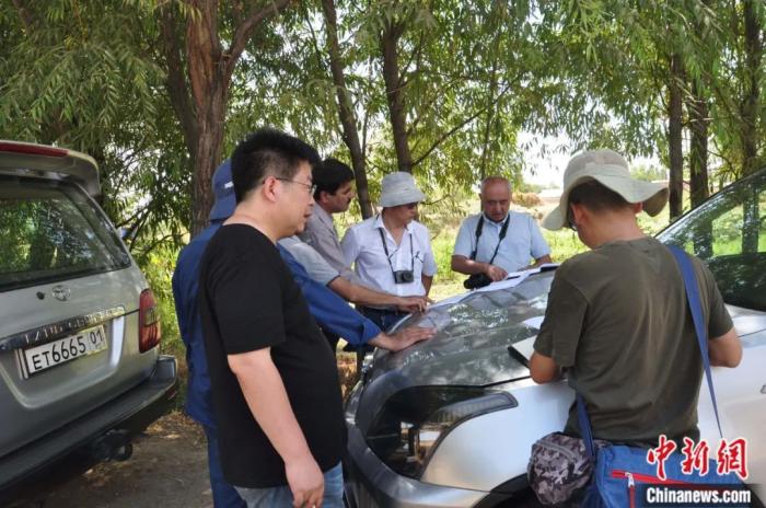 2016年在塔吉克斯坦,中塔雙方考古學(xué)家在調(diào)查現(xiàn)場(chǎng)討論。王建新 供圖