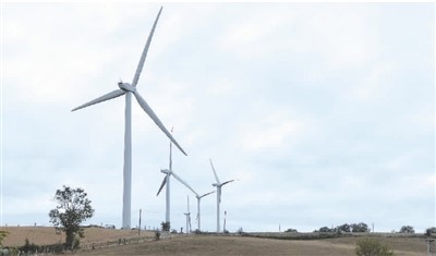 圖為中廣核歐洲能源公司位于法國(guó)阿薩克風(fēng)電場(chǎng)的風(fēng)力發(fā)電機(jī)。