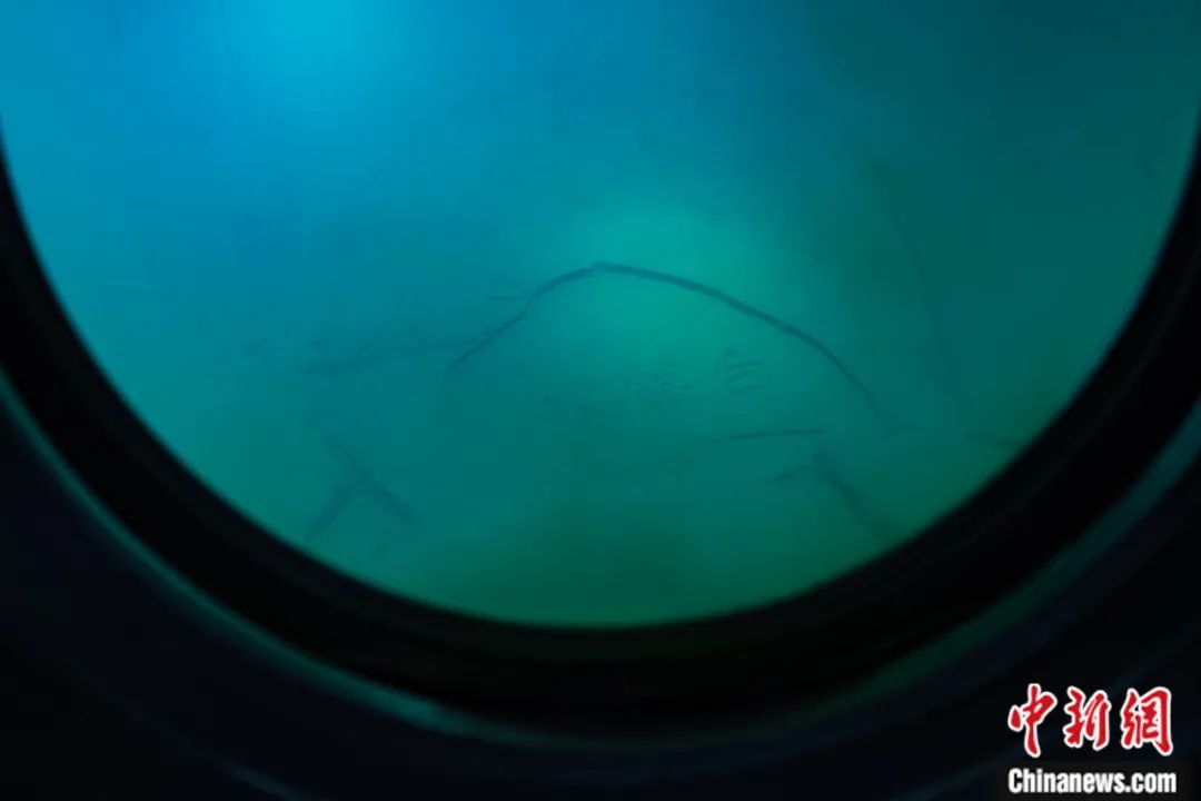 通過白鶴梁水下博物館觀測窗口拍攝“白鶴梁”題刻。何蓬磊 攝