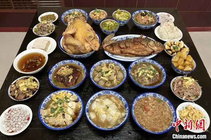 “四八席”有24道菜。即:四鋪?zhàn)?、四壓桌、兩大件、八大碗、四小碗、兩糕點(diǎn)?!埼闹O 攝