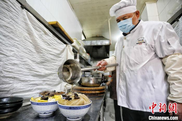 2023年2月,“四八席”廚師將熬好的老湯澆到每道菜上?!£愱?yáng) 攝
