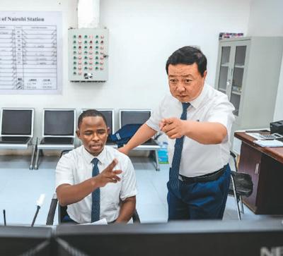 毛鑫是非洲之星鐵路運營公司運輸部內(nèi)羅畢車站運轉(zhuǎn)主任,他與徒弟彼得·恩堅加一起制定調(diào)度計劃、調(diào)控列車運轉(zhuǎn)?!拔覀儫o保留地把國內(nèi)的技術(shù)標(biāo)準(zhǔn)帶到肯尼亞,學(xué)員已達到國內(nèi)車站同等作業(yè)標(biāo)準(zhǔn)?!泵握f,幫助肯尼亞建設(shè)第一條現(xiàn)代化鐵路,是他人生中的亮點。彼得表示,自己從師父身上學(xué)到了許多專業(yè)技術(shù),未來他將把知識傳授給更多人。