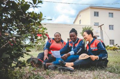 中國師父陳玲(右)是非洲之星鐵路運營公司工電部電子設(shè)備檢修工區(qū)工長。在肯尼亞工作4年來,她見證了女學(xué)員們電務(wù)技術(shù)的成長?!艾F(xiàn)在她們都能獨當(dāng)一面。”陳玲說。朱迪思(左)是陳玲的學(xué)員之一,她從師父那里獲得的不僅是技術(shù),工作間隙對飲食、文化等多維度的交流同樣讓她受益匪淺。“我們之間是師徒,更是姐妹。”朱迪思說。圖為陳玲在休息時教學(xué)員唱中文歌曲。