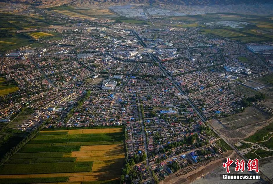 從空中俯拍世界最大規(guī)模的八卦城。據介紹,特克斯縣根據《周易》八卦“后天圖”方位設計建成,路路相通,街街相連,有著神奇迷宮般的街道布局,是現今世界上唯一一座保存良好、卦爻完整、規(guī)模最大的八卦城。劉新 攝