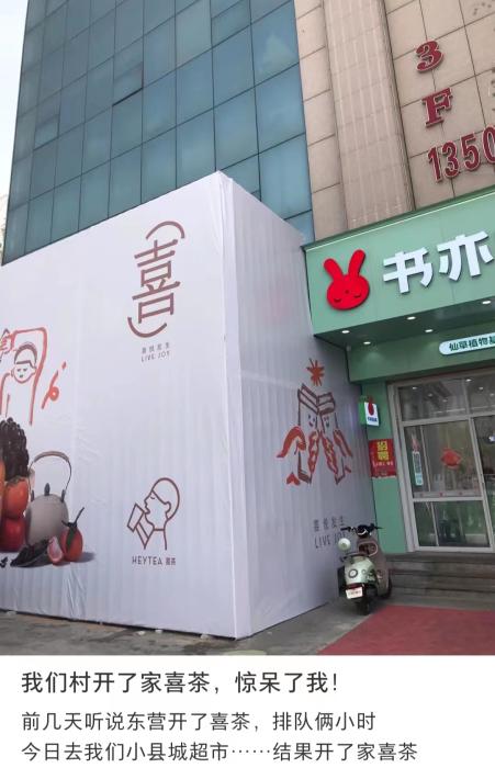 棗莊市、三明市、沙縣、沭陽縣、平江縣……在社交平臺上,有不少來自低線城市甚至小縣城的網友表示,該地已有或即將開出喜茶店。