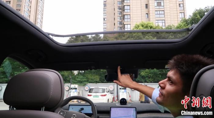 在華留學生上車體驗新能源汽車站內“一鍵換電”。 唐煒妮 攝
