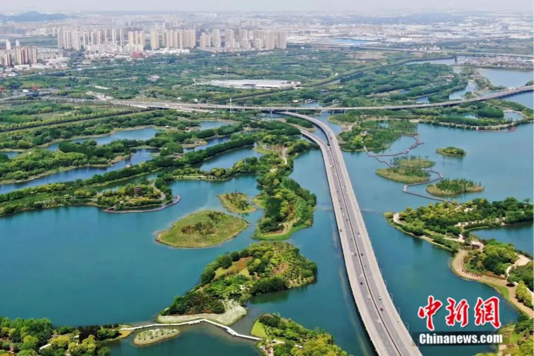 航拍蘇州虎丘濕地公園。中新社記者 泱波 攝