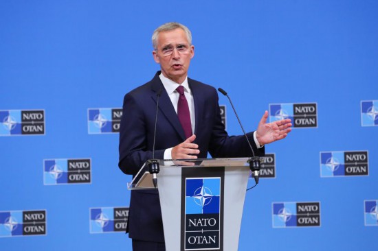 7月6日,在比利時(shí)布魯塞爾的北約總部,北約秘書長(zhǎng)斯托爾滕貝格在會(huì)議后召開新聞發(fā)布會(huì)。新華社記者鄭煥松攝