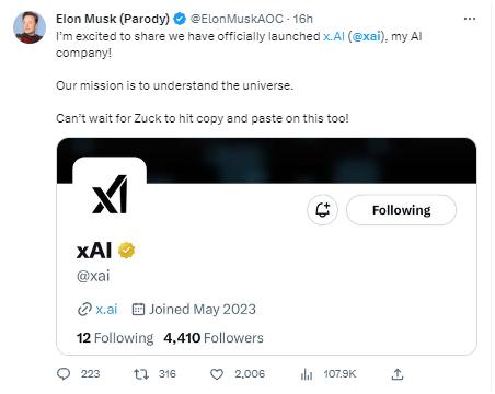 當(dāng)天,馬斯克在社交媒體平臺(tái)推特上發(fā)文,宣布成立“xAI”,并稱“我們的任務(wù)是了解宇宙”。據(jù)報(bào)道,政府文件顯示,馬斯克于3月在內(nèi)華達(dá)州注冊(cè)了該公司。