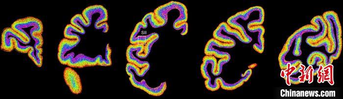 圖為不同類型細(xì)胞在獼猴大腦上的分布切片?!≈袊茖W(xué)院腦科學(xué)與智能技術(shù)卓越創(chuàng)新中心 供圖