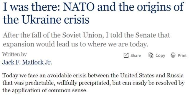 △美國昆西負(fù)責(zé)任治國研究所網(wǎng)站:美國最后一任駐蘇聯(lián)大使馬特洛克曾撰文感嘆,“我們今天正面臨一場原可避免的危機(jī)。這是一場可被預(yù)測、也的確曾被預(yù)測、卻又被蓄意促成的危機(jī)”。