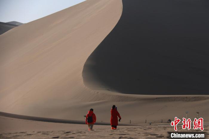 資料圖,游客在甘肅省敦煌市鳴沙山月牙泉景區(qū)游覽。 張曉亮 攝