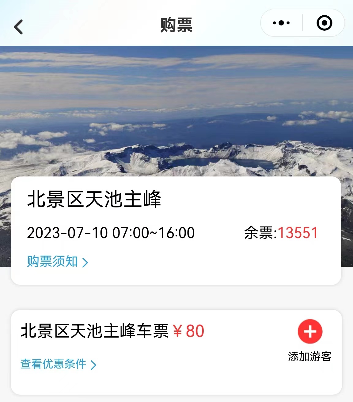 吉林長(zhǎng)白山北景區(qū)天池主峰車票價(jià)格。 截圖自“長(zhǎng)白山”微信公眾號(hào)。