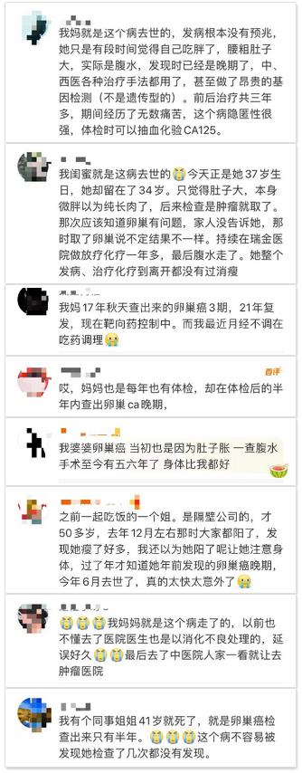 “卵巢屬于深部器官,發(fā)病不易發(fā)現(xiàn),且患者得的是上皮性卵巢癌,這種癌進展非???,早期在腹腔內(nèi)播散,會在網(wǎng)膜轉(zhuǎn)移,迅速產(chǎn)生大量腹水,目前還沒有很好的卵巢癌篩查手段?!?楊玲玲解釋。