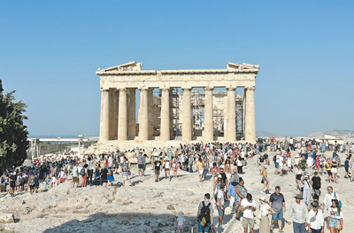 進入夏季,通往希臘雅典衛(wèi)城的山路上時常能見到數(shù)百名游客排隊等候,即便購買了快速通道服務,也要等半個小時以上才能進入。在法國巴黎,盧浮宮前游人如織,入口處排起了長長的隊伍……