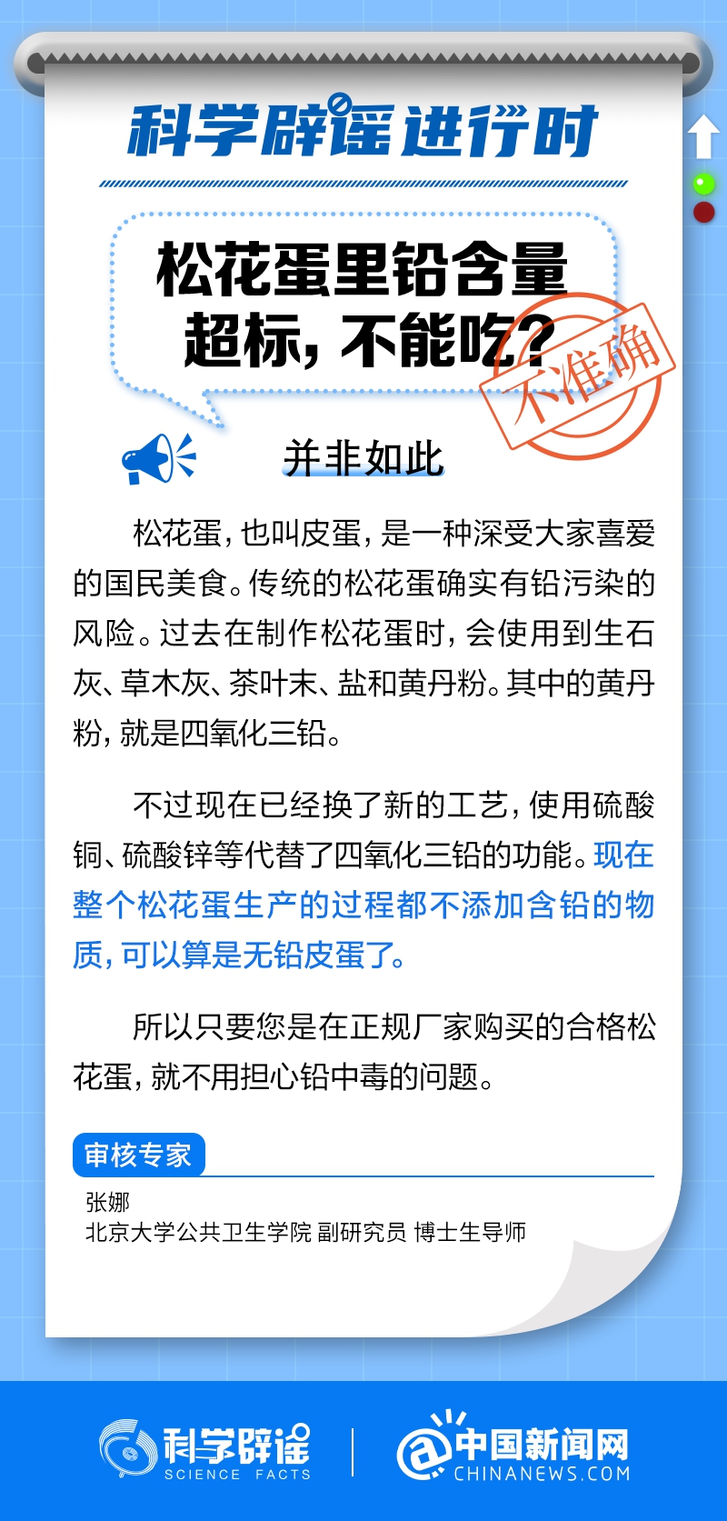過去在制作松花蛋時,會使用到生石灰、草木灰、茶葉末、鹽和黃丹粉。其中的黃丹粉,就是四氧化三鉛。不過現(xiàn)在已經(jīng)換了新的工藝,使用硫酸銅、硫酸鋅等代替了四氧化三鉛的功能。現(xiàn)在整個松花蛋生產(chǎn)的過程都不添加含鉛的物質(zhì),可以算是無鉛皮蛋了。(來源:科學辟謠、中國新聞網(wǎng)微博)