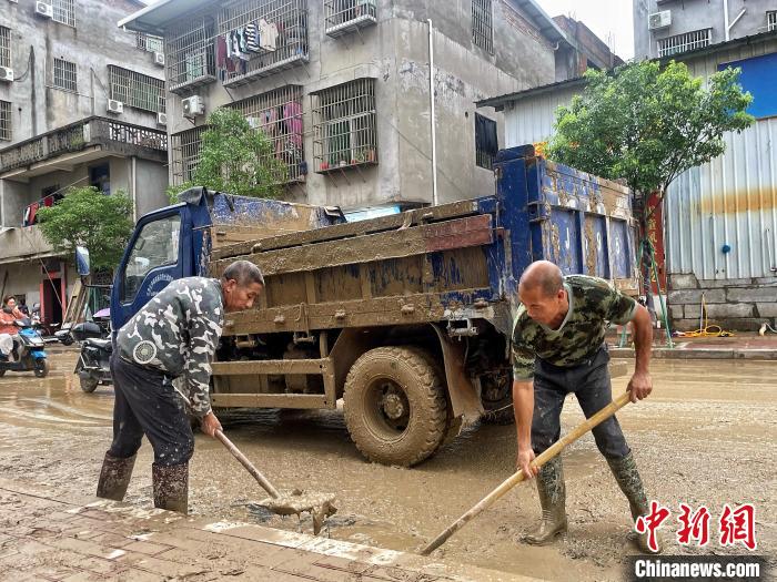 蘭田村內(nèi),村民開展淤泥清理工作。呂巧琴 攝