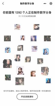 在提供素材后,往往要等待幾個小時才能完成“數(shù)字分身”制作。 截圖自妙鴨相機小程序。