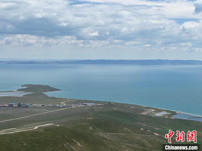 8月1日,記者拍攝到湛藍的鄂陵湖宛如藍寶石鑲嵌在群山之中,煙波浩渺、波瀾壯闊。