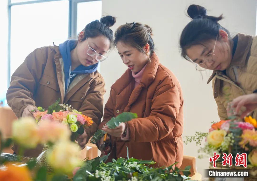 浙江省湖州市長(zhǎng)興縣小浦鎮(zhèn)小浦村文化禮堂,婦聯(lián)女同胞們?cè)趯W(xué)習(xí)插花。陳海偉 攝