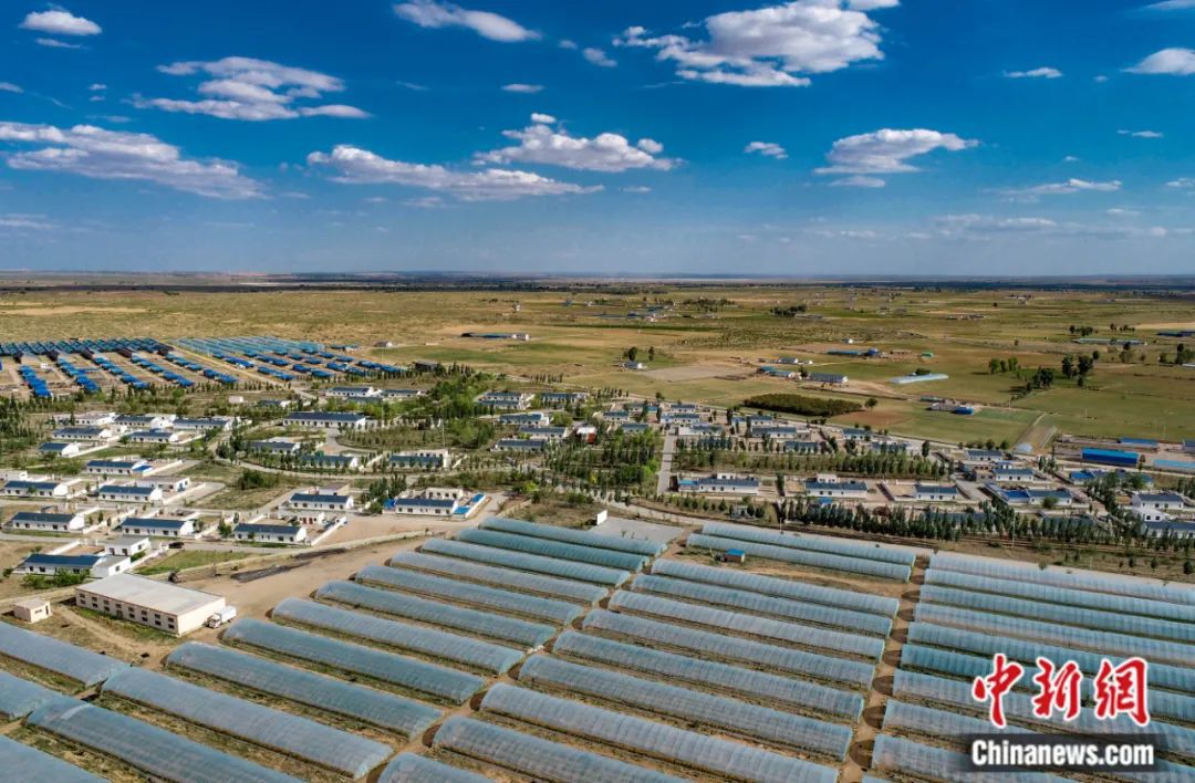 2023年6月3日拍攝的鄂爾多斯市鄂托克前旗敖勒召其鎮(zhèn)馬場(chǎng)井村易地搬遷集中安置點(diǎn)。王正 攝
