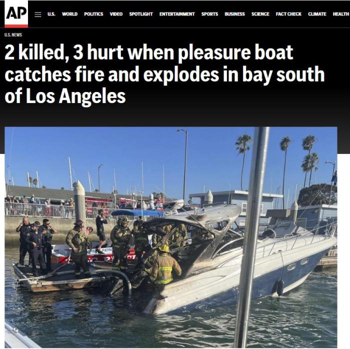 中新網8月7日電 據(jù)美聯(lián)社報道,美國加州長灘(Long Beach)發(fā)生一起游艇起火事故,造成2人死亡、3人受傷。