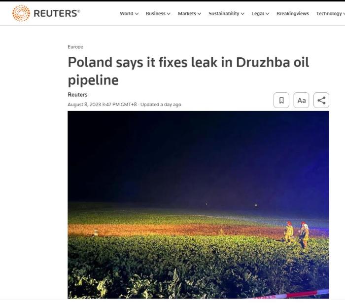 中新網(wǎng)8月8日電 據(jù)路透社報道,當(dāng)?shù)貢r間8日,波蘭石油管道運(yùn)營商PERN稱已修復(fù)德魯日巴輸油管道,恢復(fù)正常運(yùn)營。