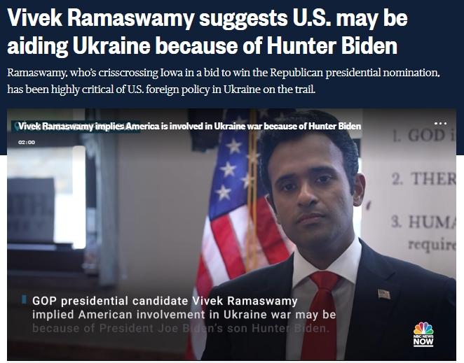 中新網(wǎng)8月8日電 據(jù)美國全國廣播公司(NBC)報(bào)道,當(dāng)?shù)貢r(shí)間6日,美國共和黨2024年總統(tǒng)競選人維韋克·拉馬斯瓦米稱,美國參與烏克蘭危機(jī)或與拜登家族腐敗有關(guān)。