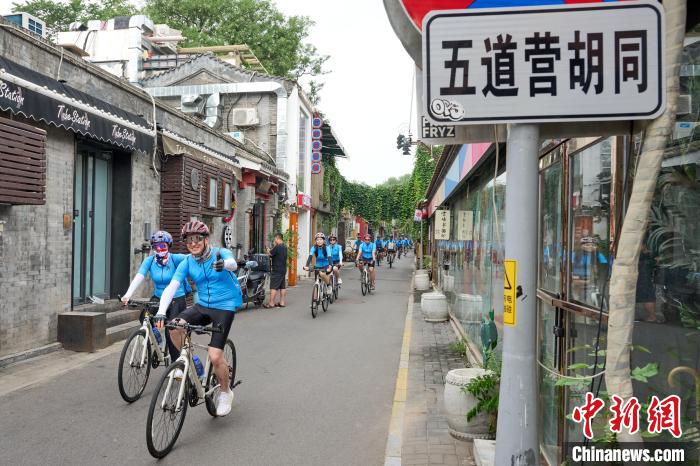 8月8日,臺(tái)胞青年在五道營胡同騎行。(主辦方供圖)