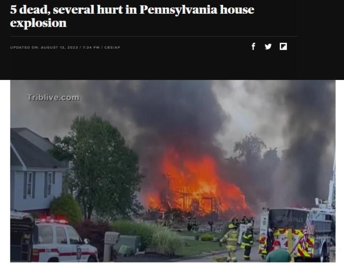 中新網(wǎng)8月14日電 據(jù)外媒報(bào)道,當(dāng)?shù)貢r(shí)間12日,美國(guó)賓夕法尼亞州匹茲堡附近城鎮(zhèn)普拉姆發(fā)生房屋爆炸。警方表示,這起事故已造成5人死亡、3人受傷,多座建筑物受損。