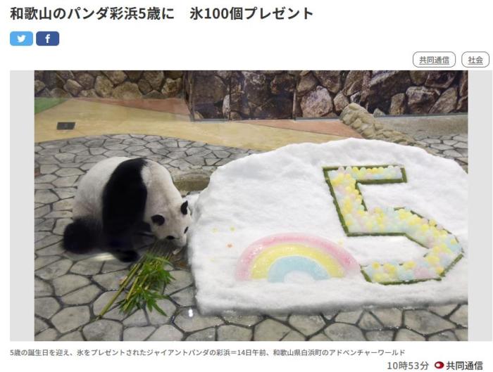 中新網(wǎng)8月14日電 據(jù)日本共同社報(bào)道,8月14日,日本和歌山縣白濱町“冒險(xiǎn)大世界”動(dòng)物園的雌性旅日大熊貓“彩濱”迎來五歲生日。