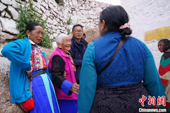 8月6日,在曲古寺,游客與主瑪央宗一家交談。劉冉陽(yáng) 攝