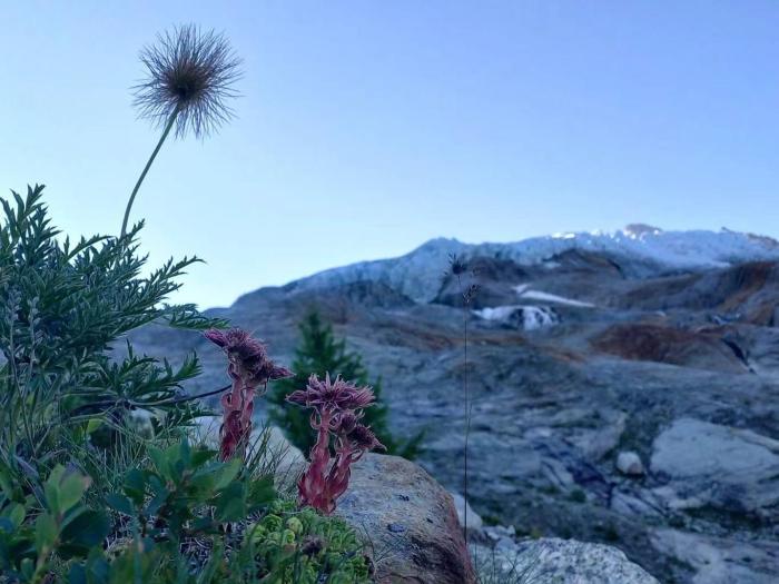 勃朗峰冰川撤退后的先驅花朵。施普林格·自然 供圖