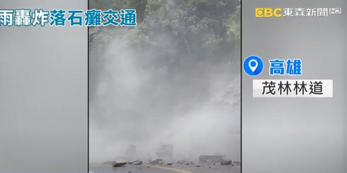 圖為臺(tái)灣高雄市遭落石的山路。 圖片來(lái)源:臺(tái)灣東森新聞網(wǎng)視頻截圖
